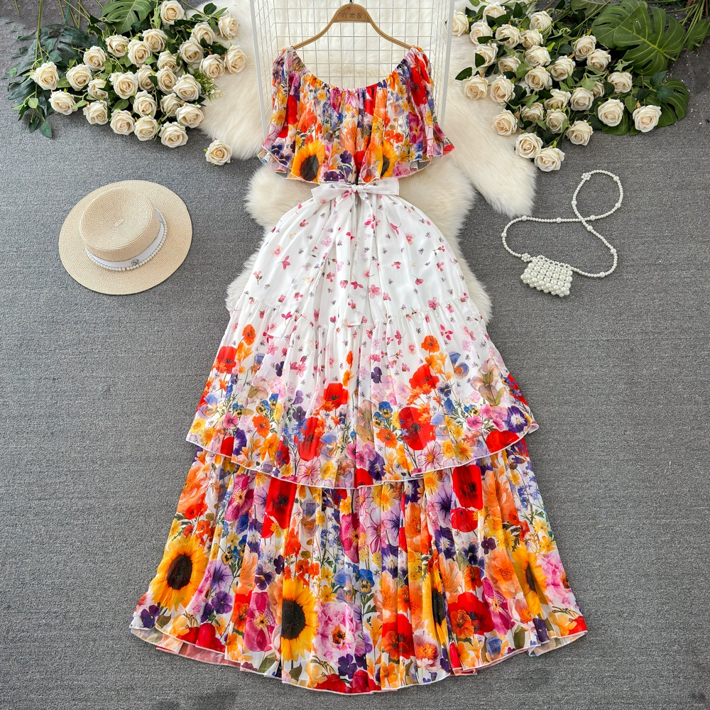 Off-the-shoulder fashionable lady a-line cake print dress