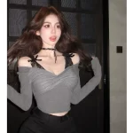 | nameOriginal | Off-the-shoulder lace patchwork slim-fitting crop top fake two-piece |