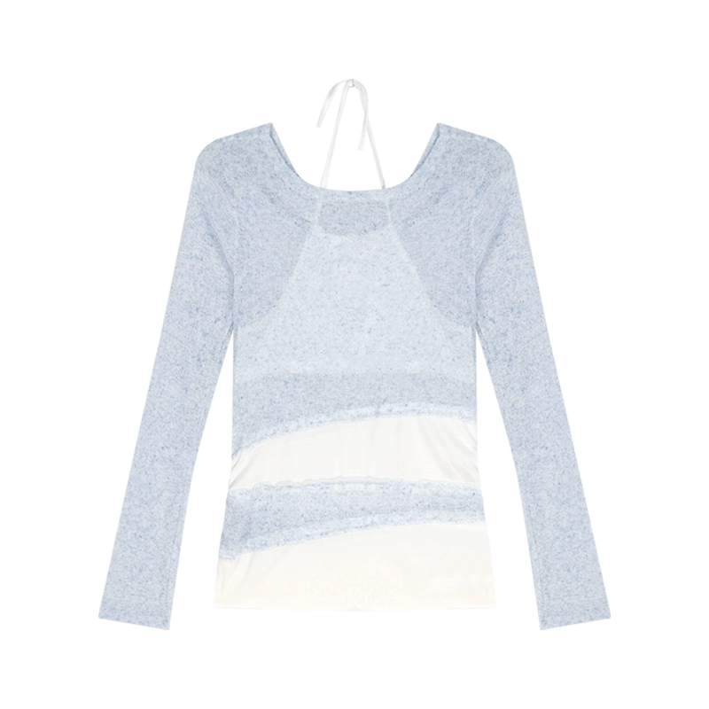 Off-the-shoulder long-sleeved design niche slim fit fake two-piece