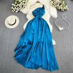 nameOriginal | Off-the-shoulder party ladylike slant-neck suspender long dress |