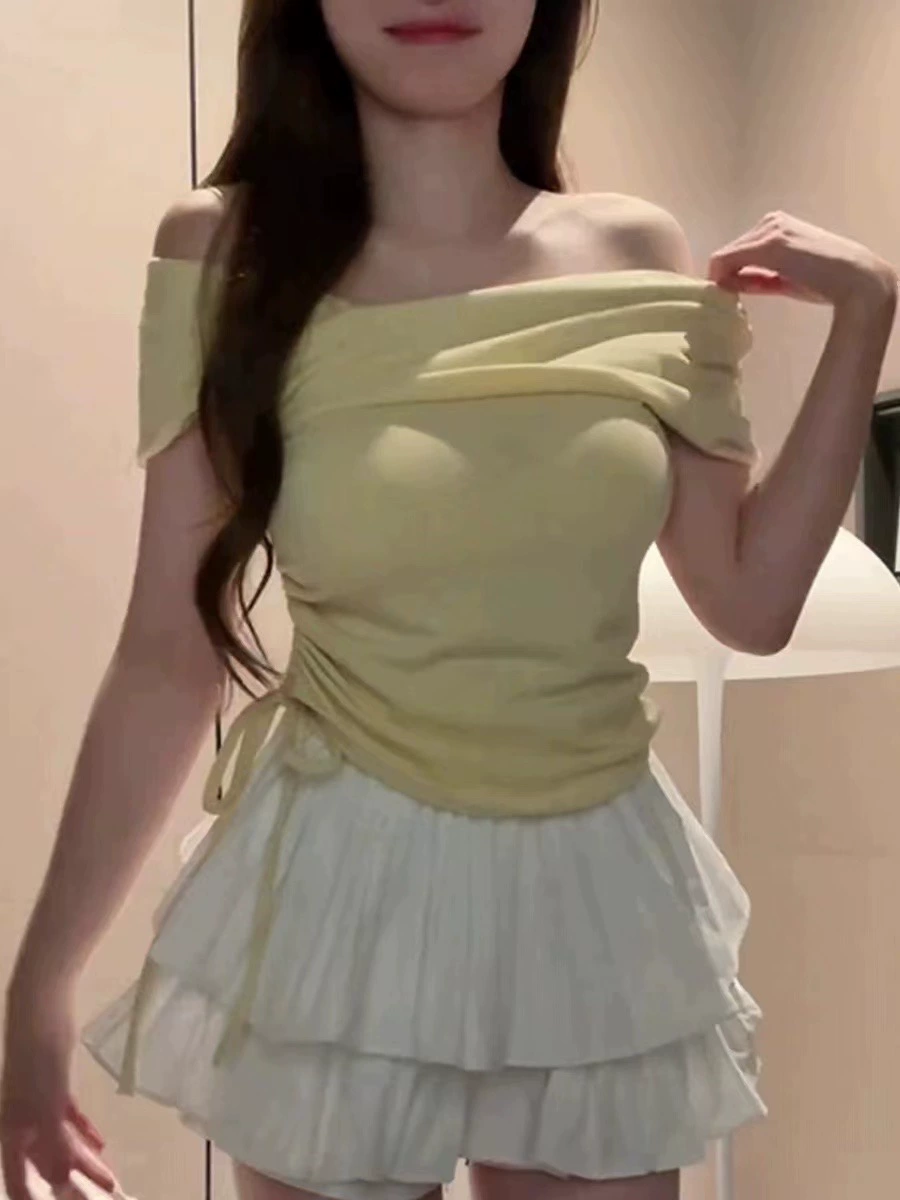 | nameOriginal | Off-the-shoulder reversible twist-on premium drawstring T-shirt |