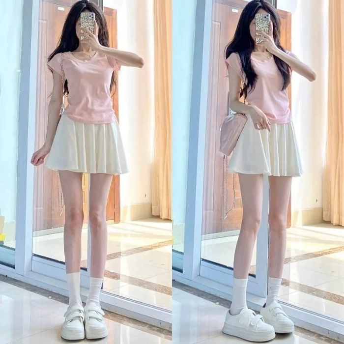 Off-white ice silk summer student student anti-exposure pleated skirt