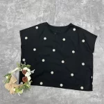 | nameOriginal | Official website sleeveless embroidered polka dot shirt for women 2024 summer new round neck pure cotton flying sleeve thin large size shirt |