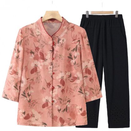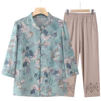 Old Lady's Summer Dress Grandma's Seven-point Shirt Old People's suit Mother's Top Clothes Middle-aged and Old People's Women's Shirt
