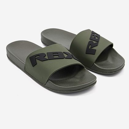 | sub_Categories | Shoes, Slides & Slippers, men brand logo slip on slides olive black |