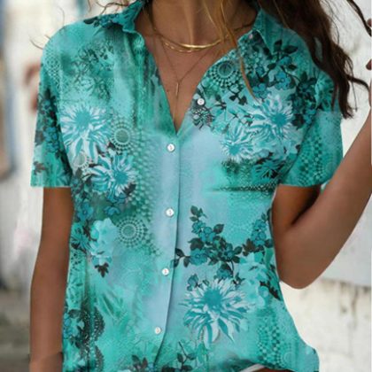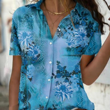 | nameOriginal | On the same day delivery 2023 Amazon AliExpress foreign trade Women's printed short sleeve lapel slim fashion shirt Women |