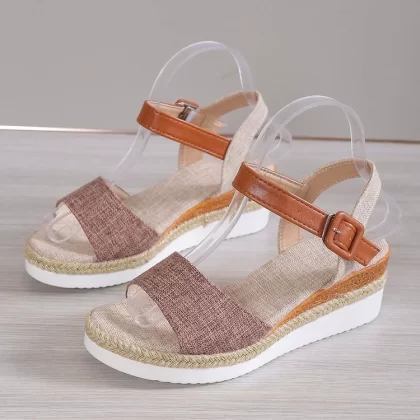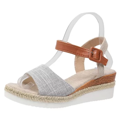 One-line buckle foreign trade large size thick-soled wedge fashion sandals
