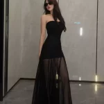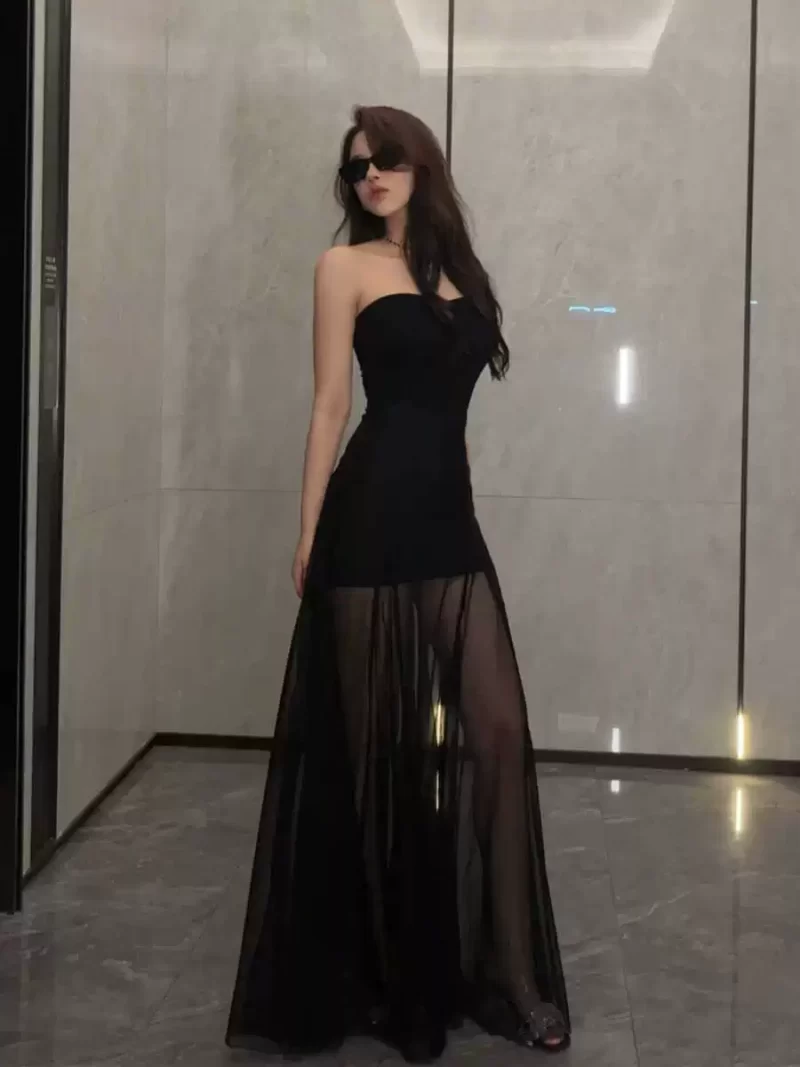 nameOriginal | One-line neckline mesh black sexy dress with tube top |