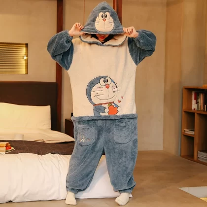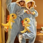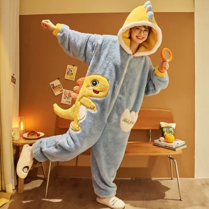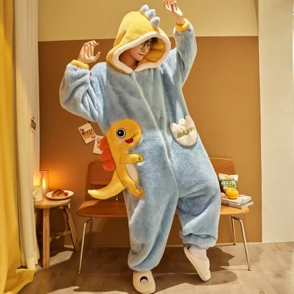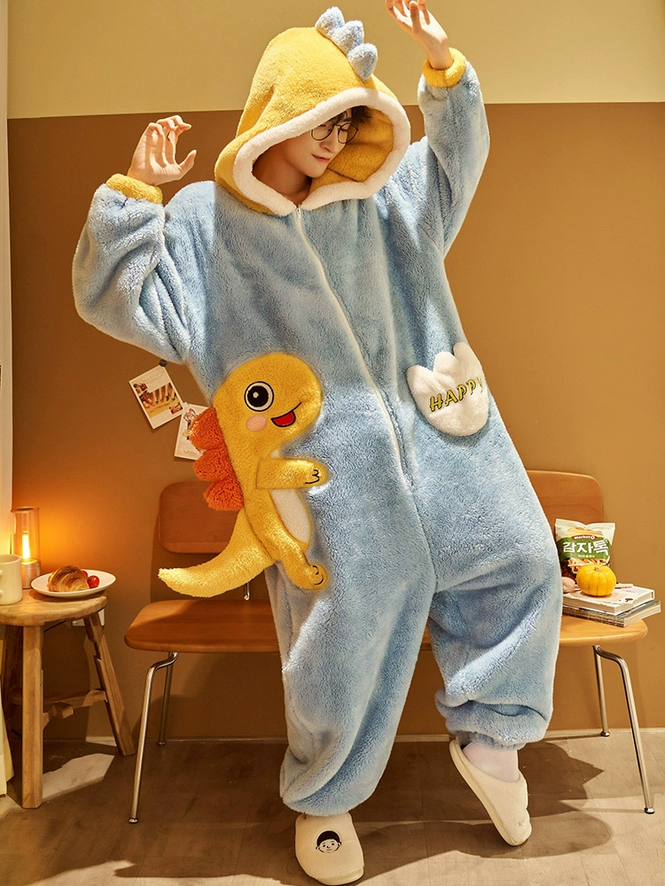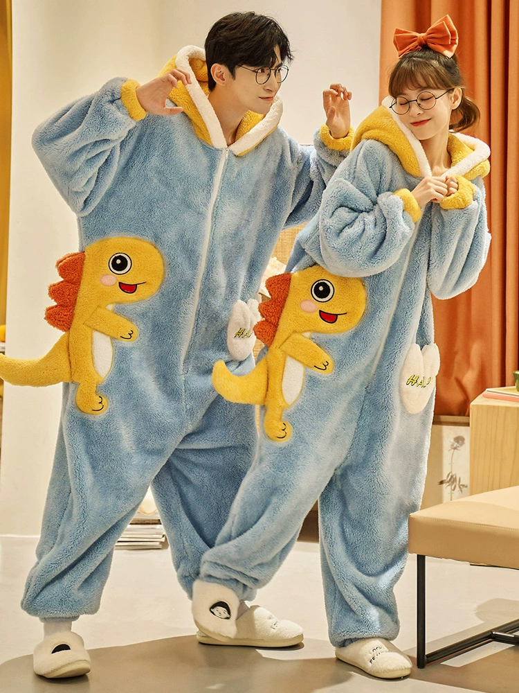| nameOriginal | One-piece couple pajamas autumn and winter coral velvet thickened flannel women's cute dinosaur men's home clothes |