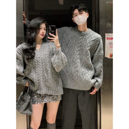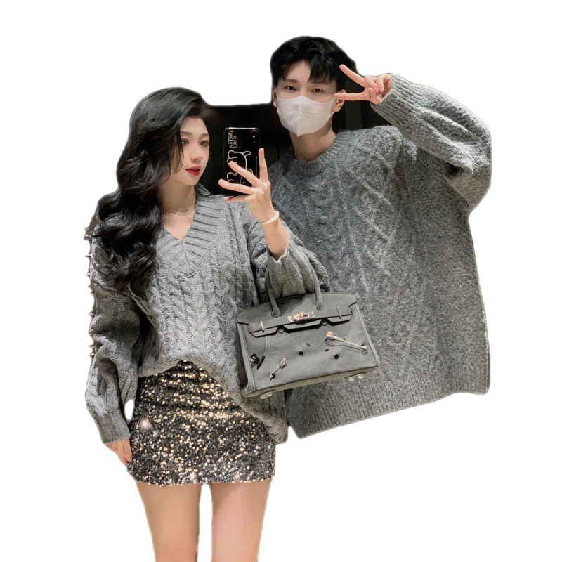 One-piece delivery 2023 couple clothes autumn and winter New niche design trendy lazy style collar loose sweater wool