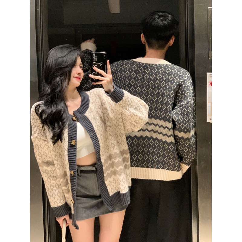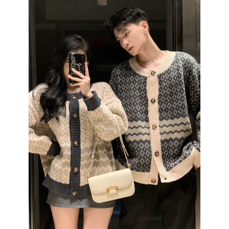 One-piece delivery 2023 real shot couple wear autumn and winter new online celebrity temperament same cardigan student class clothes long sleeve