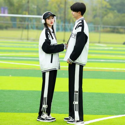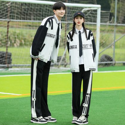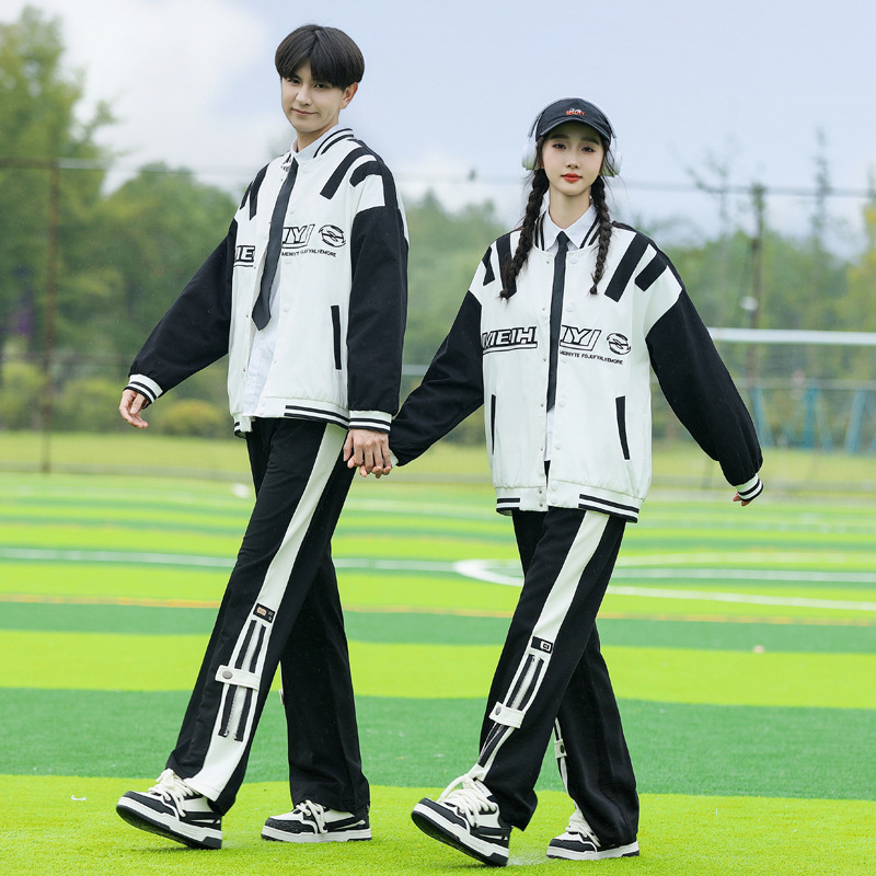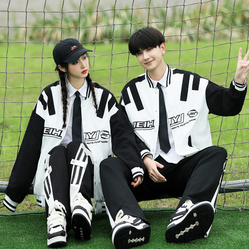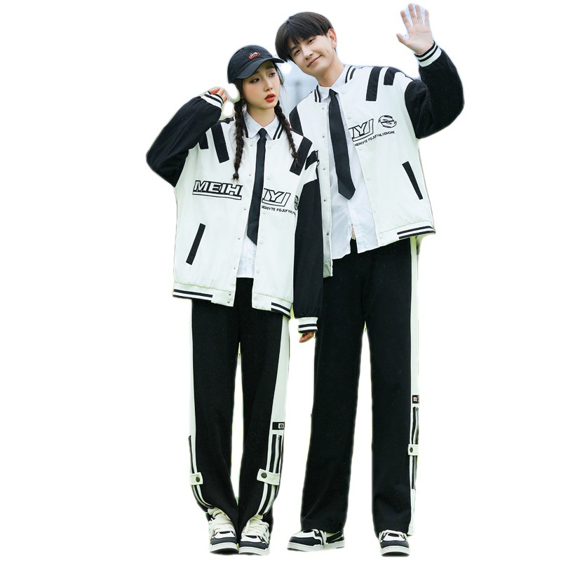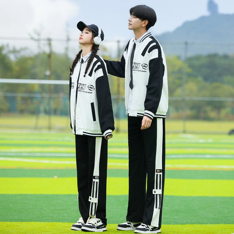 One-piece delivery 2023 real shot couple wear autumn new American embroidery color matching men's and women's loose baseball uniform suit