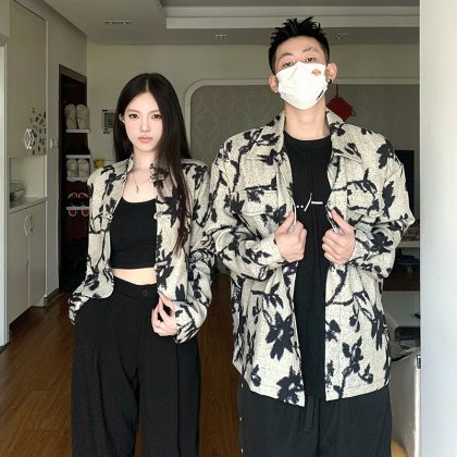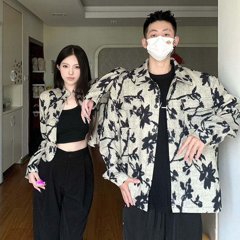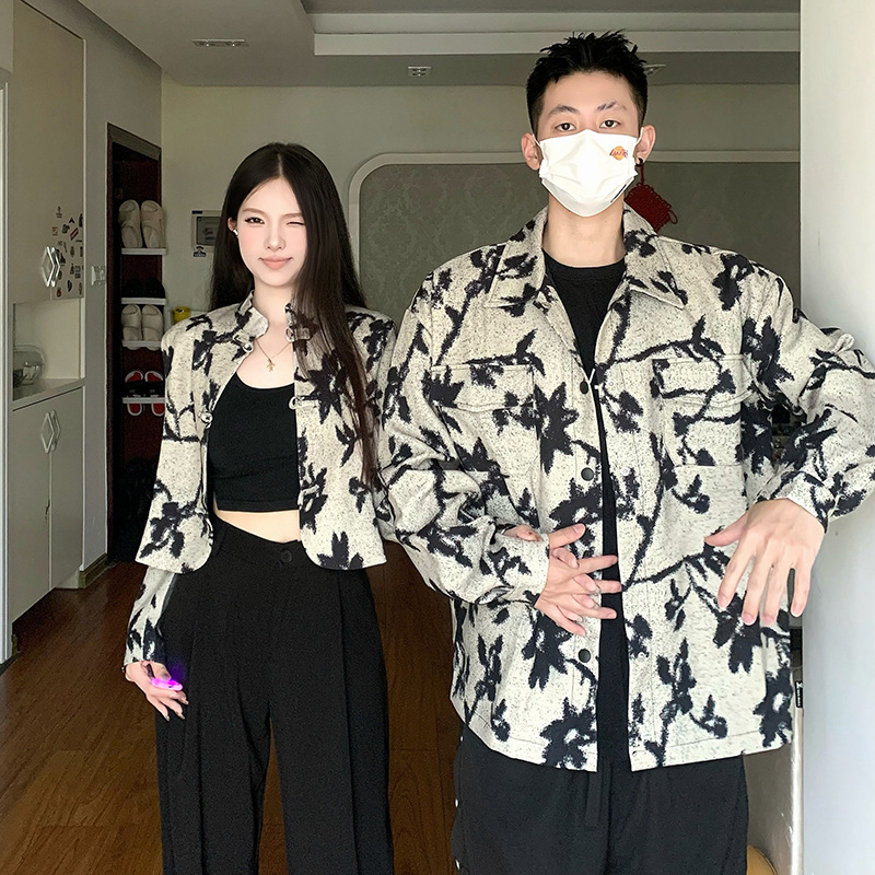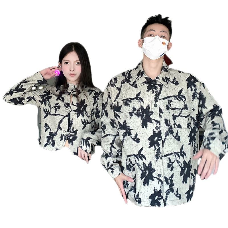 | nameOriginal | One-piece delivery 2023 real shot couple wear new Chinese national fashion short coat women's stand collar loose slimming retro ink painting |