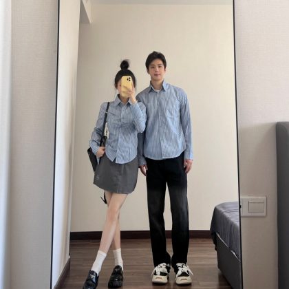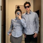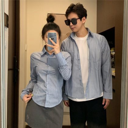 | nameOriginal | One-piece delivery 2023 real shot# couple wear spring and autumn striped slim waist tight shirt Women's Korean-style design sense niche |