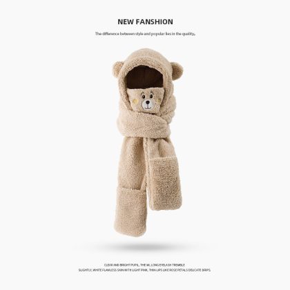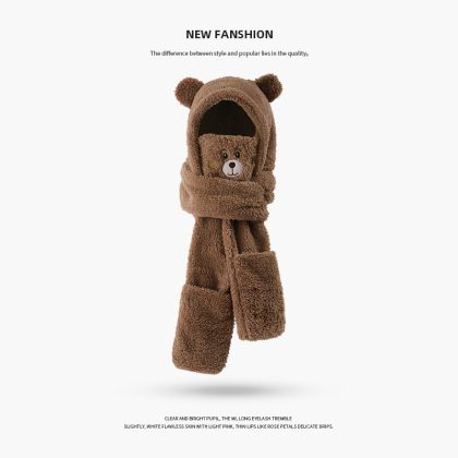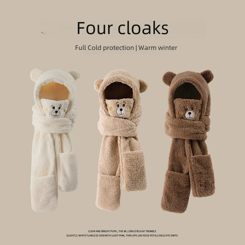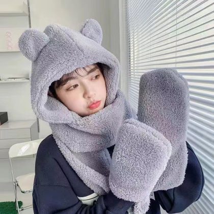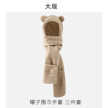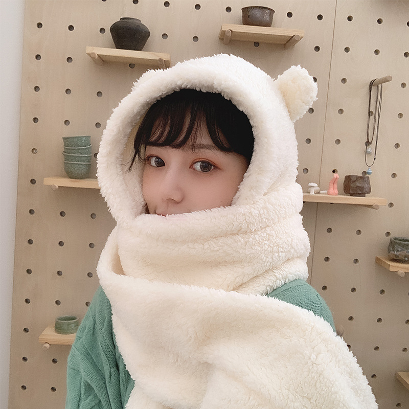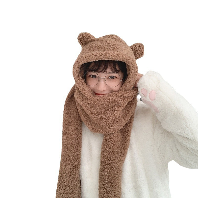 nameOriginal | One-piece delivery bear ears cute student hat scarf integrated female winter plush scarf mask four-piece set |