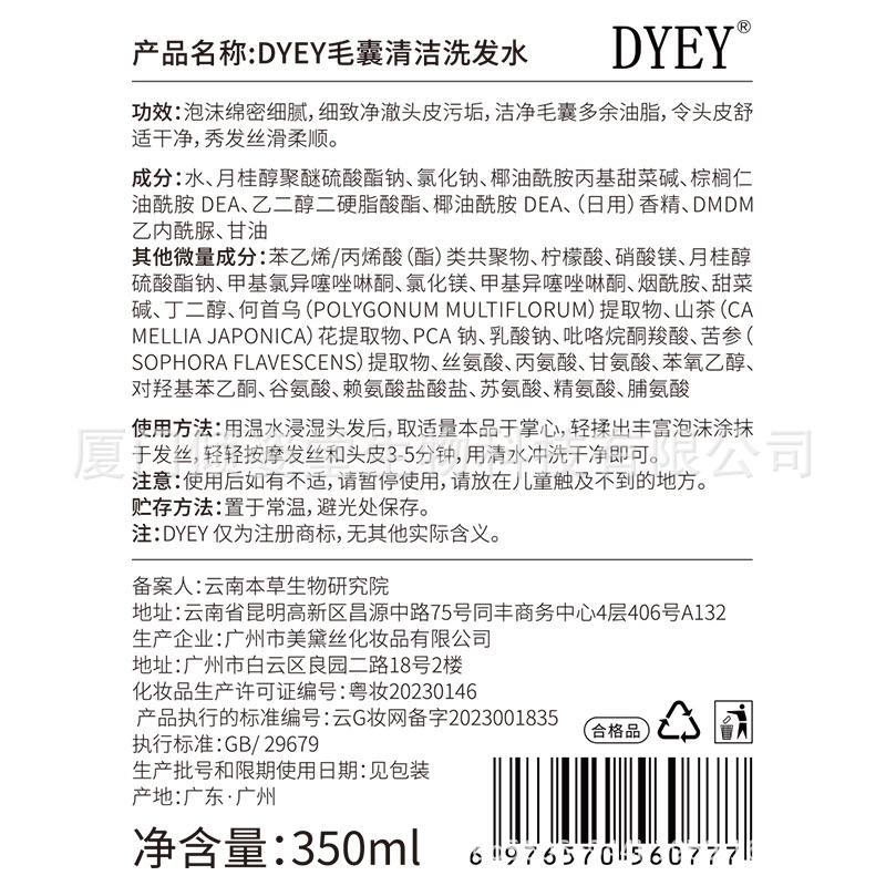 One-piece hair generation soft and smooth moisturizing plant extract gentle and clean DYEY Yunnan herbal hair follicle cleaning shampoo