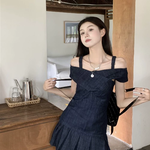 | nameOriginal | One-shoulder denim pleated skirt two-piece shirt |