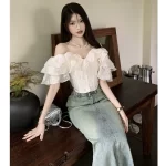 | nameOriginal | One-shoulder ruffled waist slimming slimming fishbone |