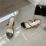 One-word foreign trade wood grain thick-soled rivet wedge sandals