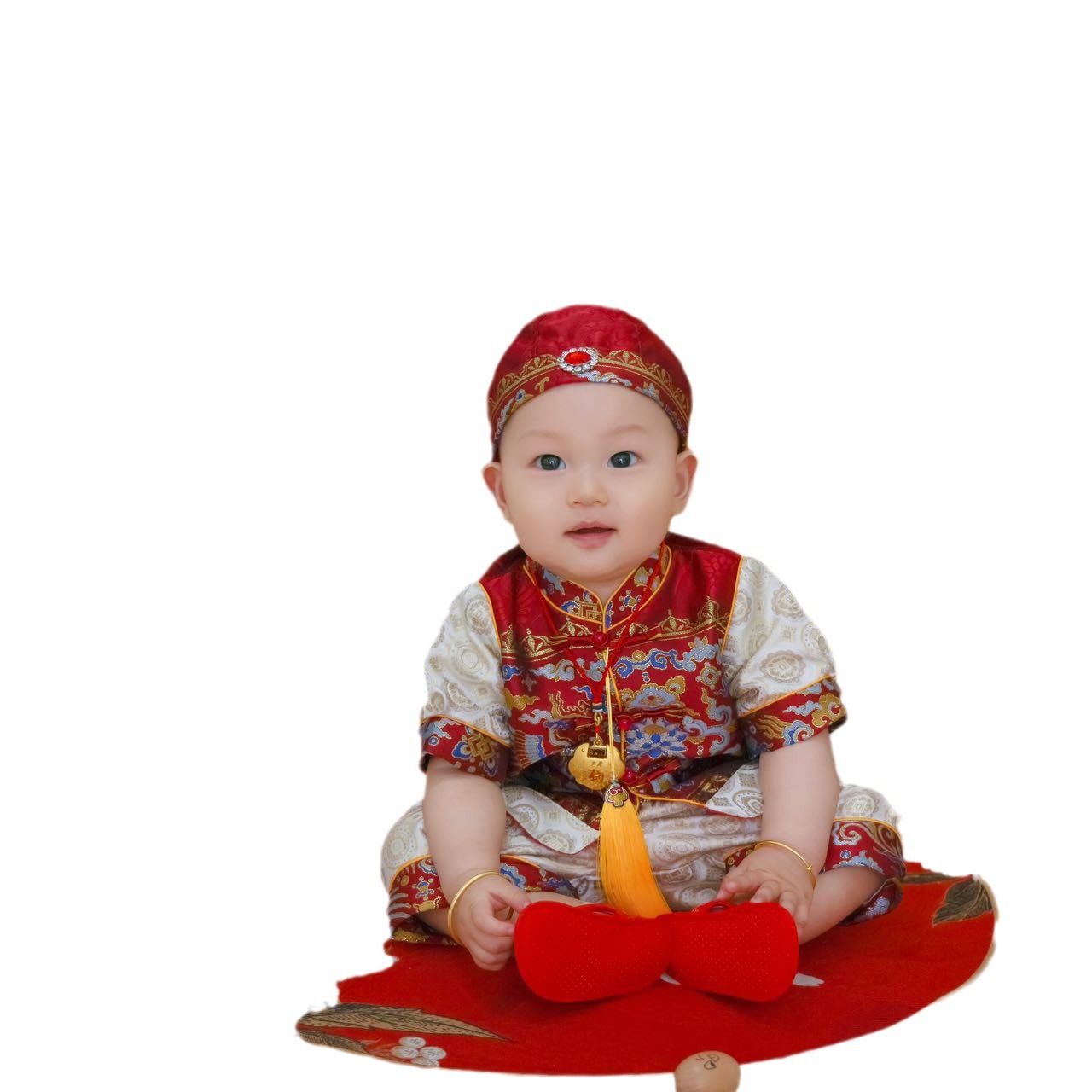 One Year Old Dress Boy Baby Spring Clothes Baby Birthday Catch Week Clothes Boy's New Chinese Style Boy's Hundred Days Clothes Foreign Style Spring