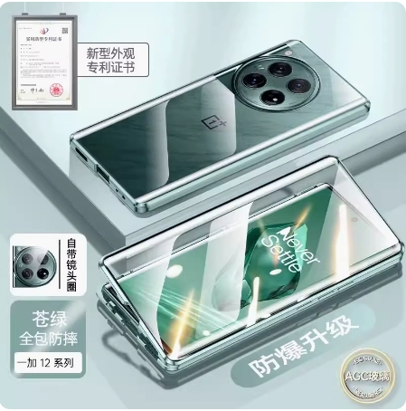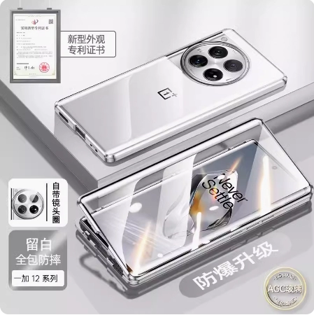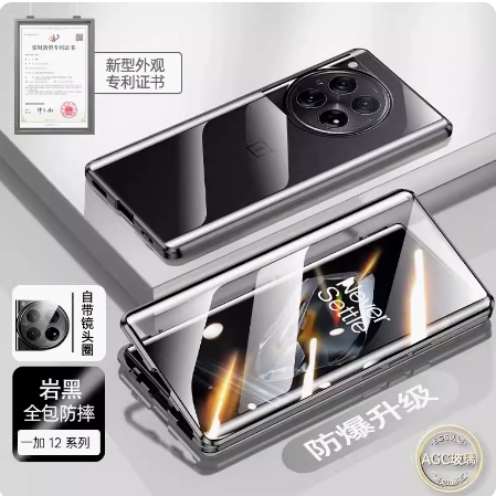 Oneplus 12 mobile phone case new 1+12 plain leather protective cover all-inclusive anti-fall oneplus12 double-sided flip cover magnetic transparent oppo case ultra-thin men and women high-end business and advanced sense suitable