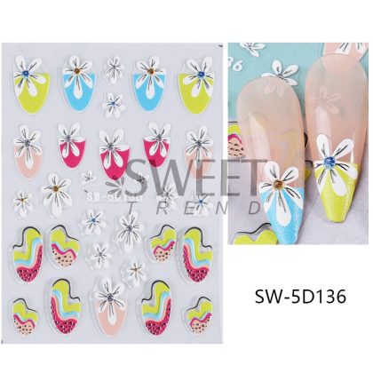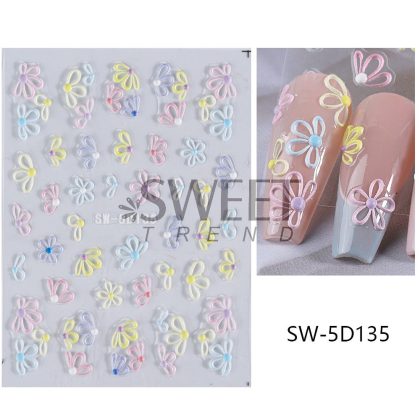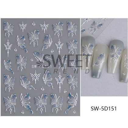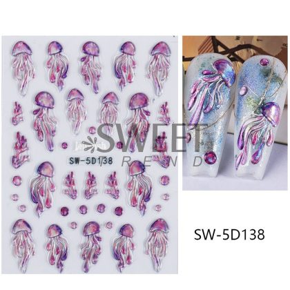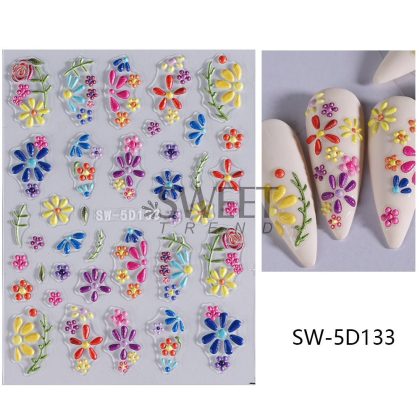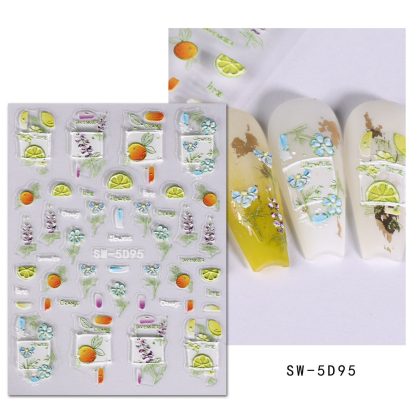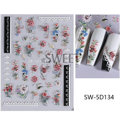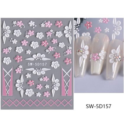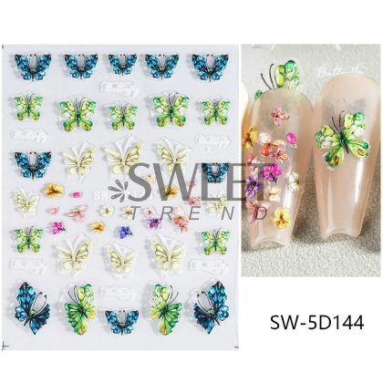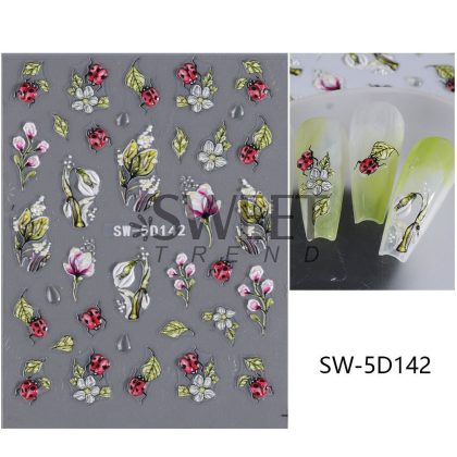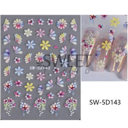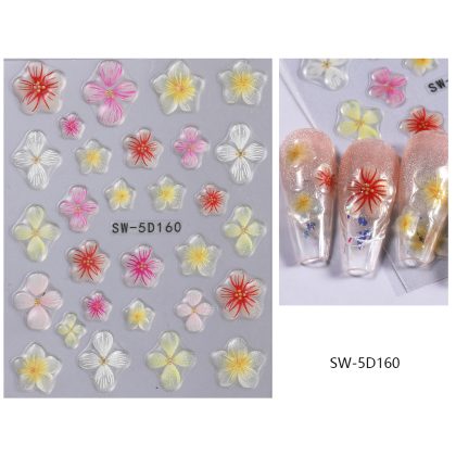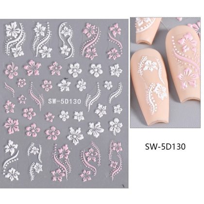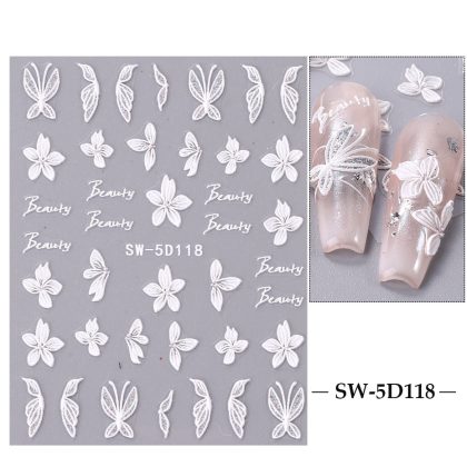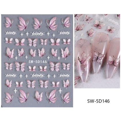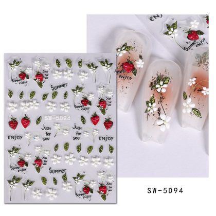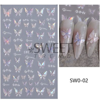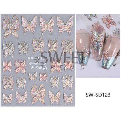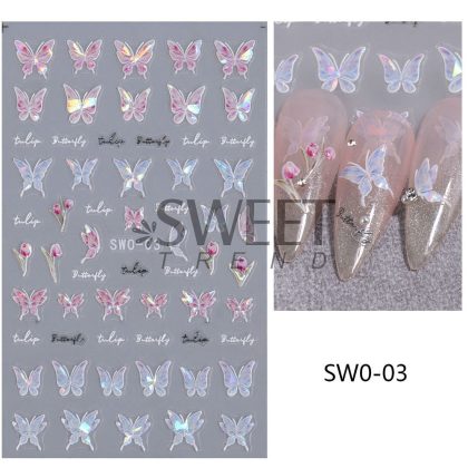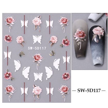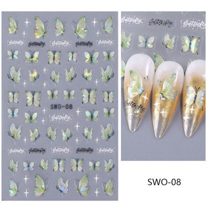 Online Red Butterfly nail stickers wholesale little red book laser colorful butterfly flower 5D relief three-dimensional adhesive stickers