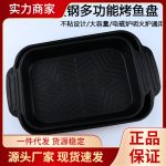 OP57 طبق سمك مشوي غير لاصق عميق مستطيل منزلي طبق سمك مشوي من الفولاذ الكربوني طبق سمك مشوي مطعم مشوي
