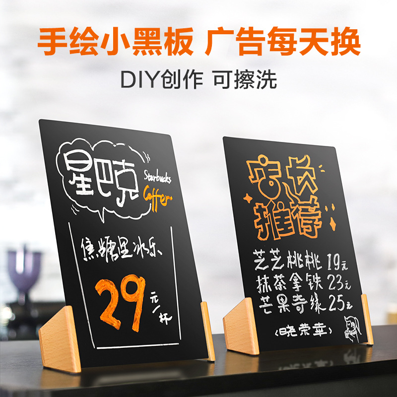 | nameOriginal | OQ5M hand-painted menu design small blackboard erasable price tag desktop table tag coffee shop price tag ordering menu |