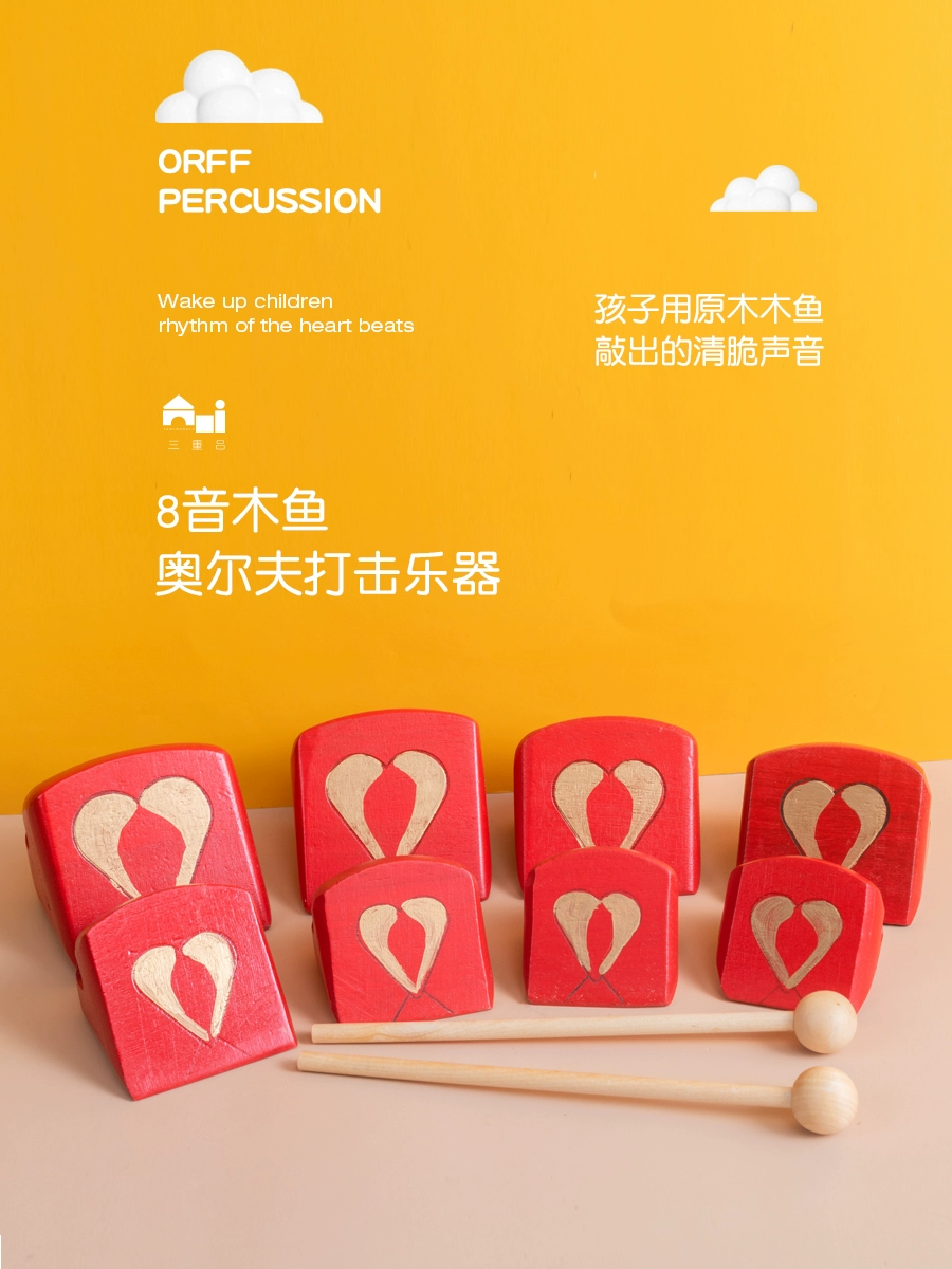 | nameOriginal | Orff percussion instrument solid wood children's early education log square seven-eight-tone wooden fish primary school teaching aids wooden bangzi |