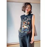 Organza buttoned back sleeveless babydoll embroidered