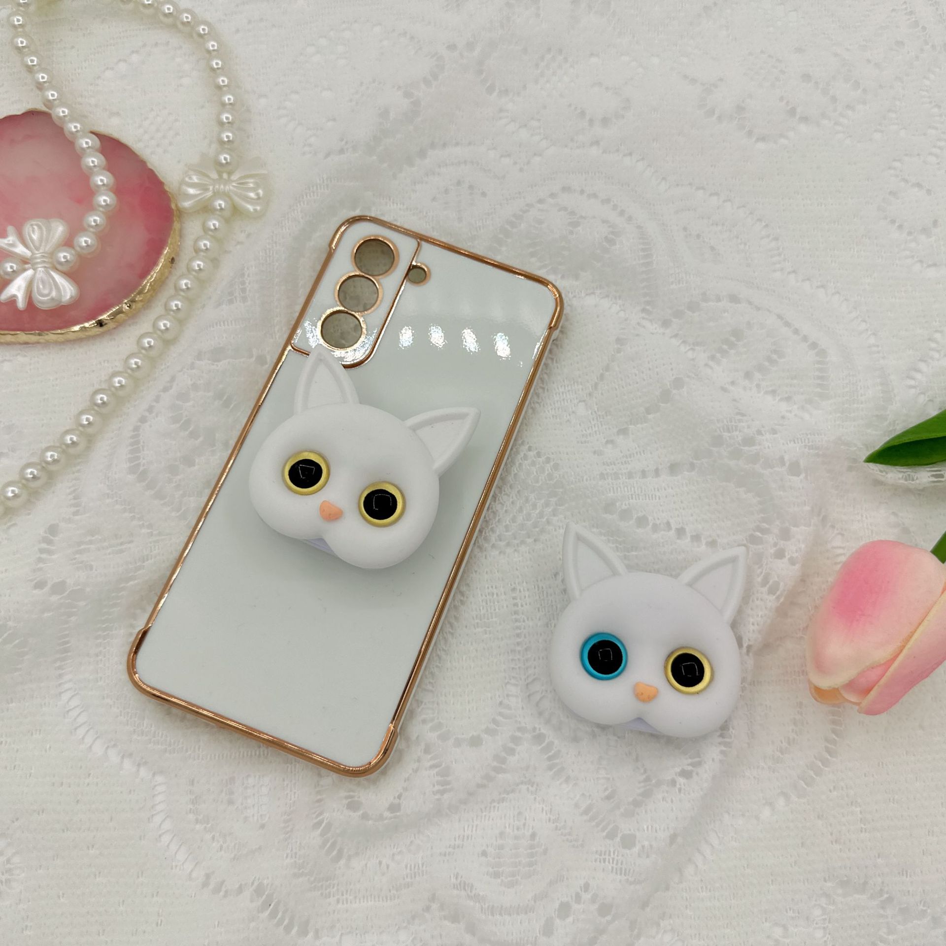 Original adhesive portable makeup mirror selfie ring ins style three-dimensional 3D cute cat mobile phone airbag bracket