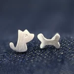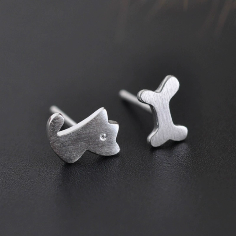 | nameOriginal | Original and simple S925 sterling silver ear jewelry, cute puppy bone asymmetric earrings, women's earrings, versatile and versatile |
