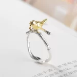 البساطة الأصلية S925 الفضة الاسترليني المصنوعة يدويًا والمطلية بالذهب يمكن فتح طائر ستيريو ضبط الخاتم، هدية خاتم البنصر للسيدات