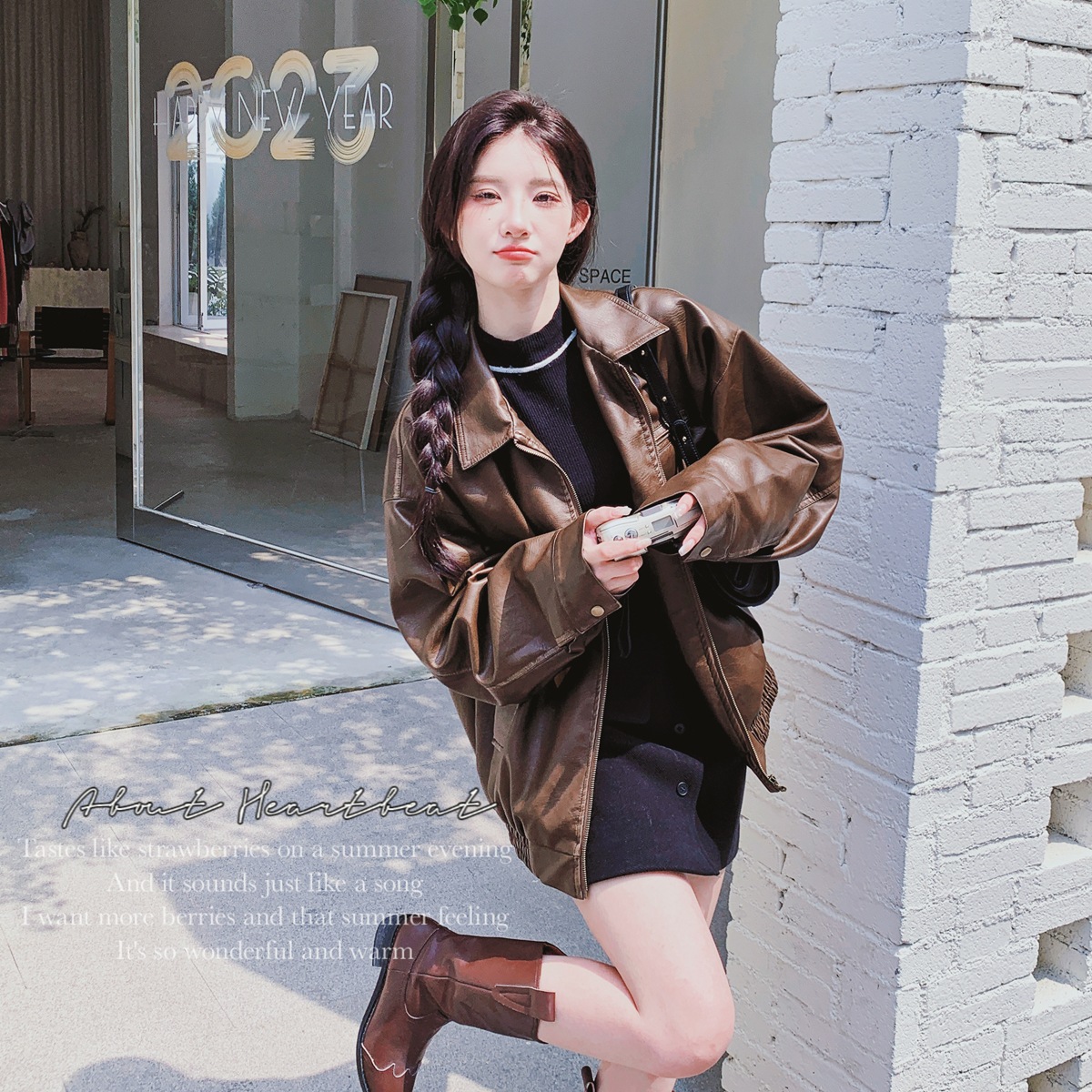 | nameOriginal | Original Clothing Co., Ltd. Hong Kong style retro pocket stitching oversize lapel brown leather short coat for women |