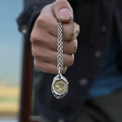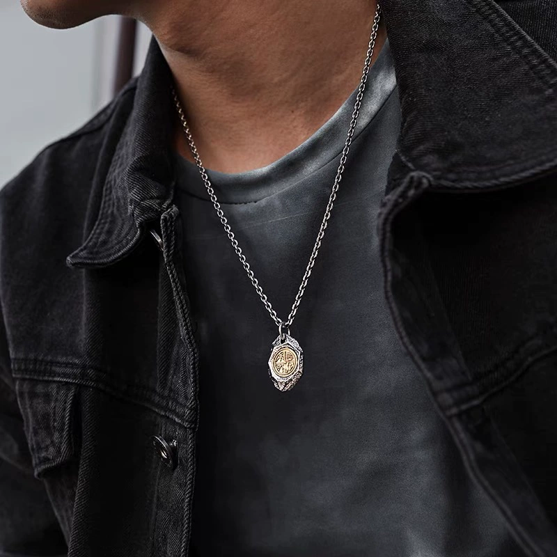 Original design "Chang Le Wei Young" necklace men's national style design rhombus stone pendant men's retro pendant versatile