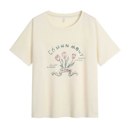 | nameOriginal | Original design milk sweet Tulip printed short-sleeved T-shirt chubby girl plus size women's round neck t shoulder slimming 62528 |