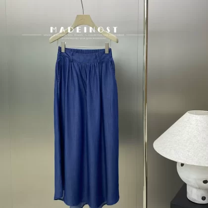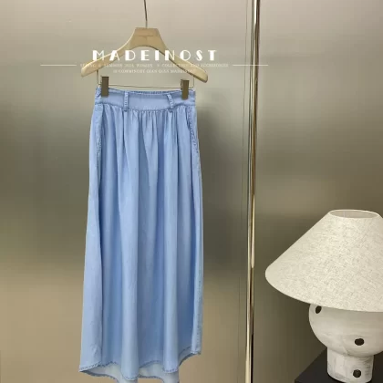 تنورة جينز طويلة بتصميم أصلي مع حاشية كبيرة