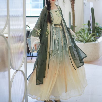 | nameOriginal | Original [Green Lily] Hanfu women's 2024 New Song-style placket raccoon aircraft sleeve white skirt spring and summer |