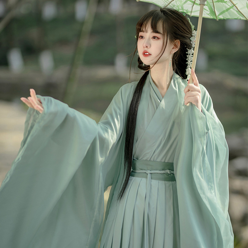 | nameOriginal | Original Hanfu women's clothing Green Cross collar wide sleeve flow fairy skirt chivalrous female Wei and Jin style big sleeve shirt Super fairy style ancient costume summer |