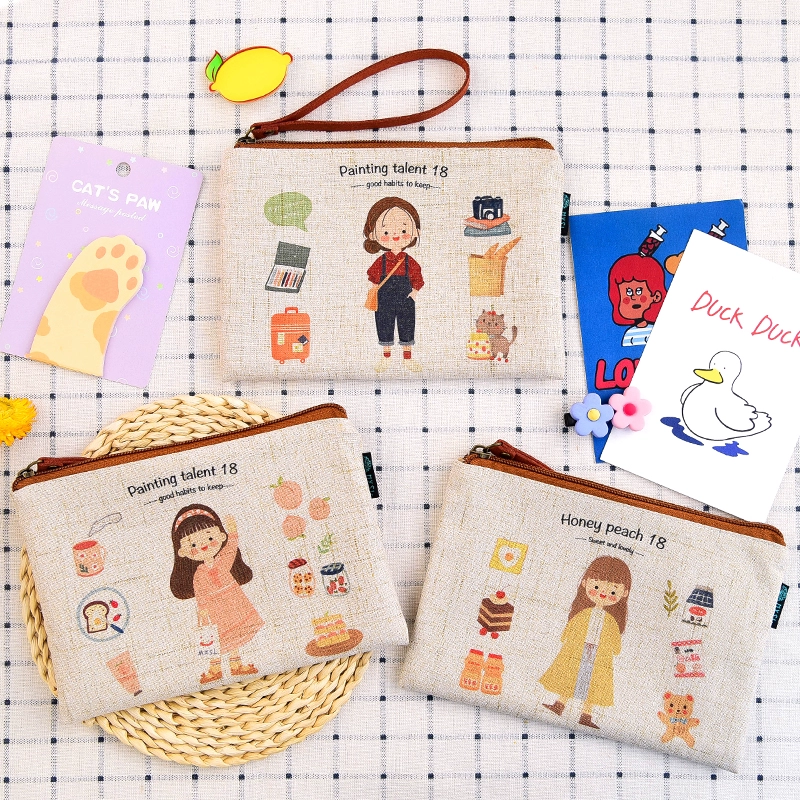 نسيج القطن والكتان الياباني الأصلي صغير طازج وطويل بشاشة كبيرة حقيبة الهاتف المحمول محفظة الطالب محفظة نسائية للعملات المعدنية يد نسائية