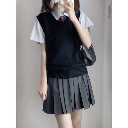 | nameOriginal | Original jk uniform embroidered knitted solid color vest Japanese college style basic V-neck sweater vest spring and autumn in stock |