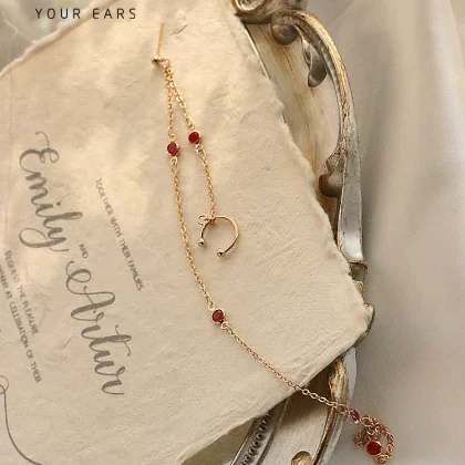 Original red zircon tassel mosquito coil ear clip Hanfu