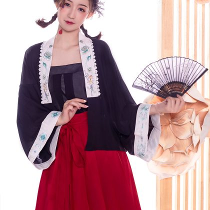 | nameOriginal | Original Song-made Short Hanfu Women's [Jade Cicada] Han-element Embroidered Pair Top Pleated Skirt Three-piece Set Summer |