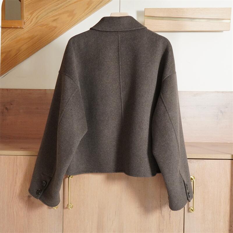 | nameOriginal | Original-women's lapel 7522/253 dark coffee brown loose double-sided woolen short coat new autumn and winter |