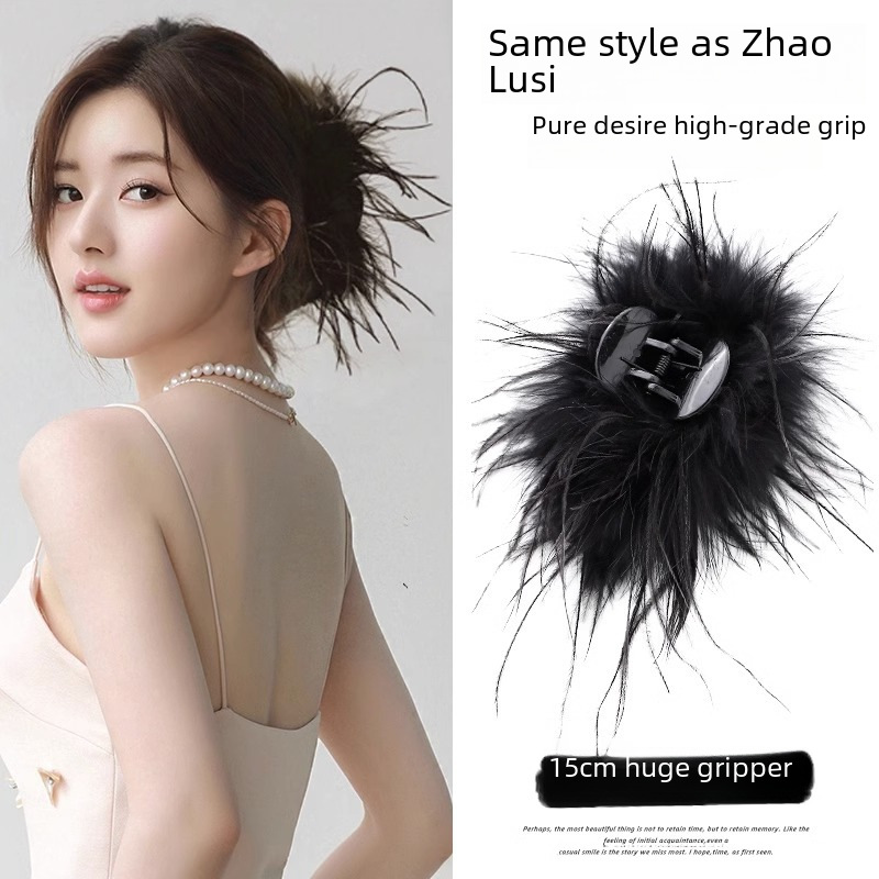 Ostrich Plush Black Feather Oversized Grab Clip Women's Head High-Level Hair Clip Headwear Shark Clip Hair Clip