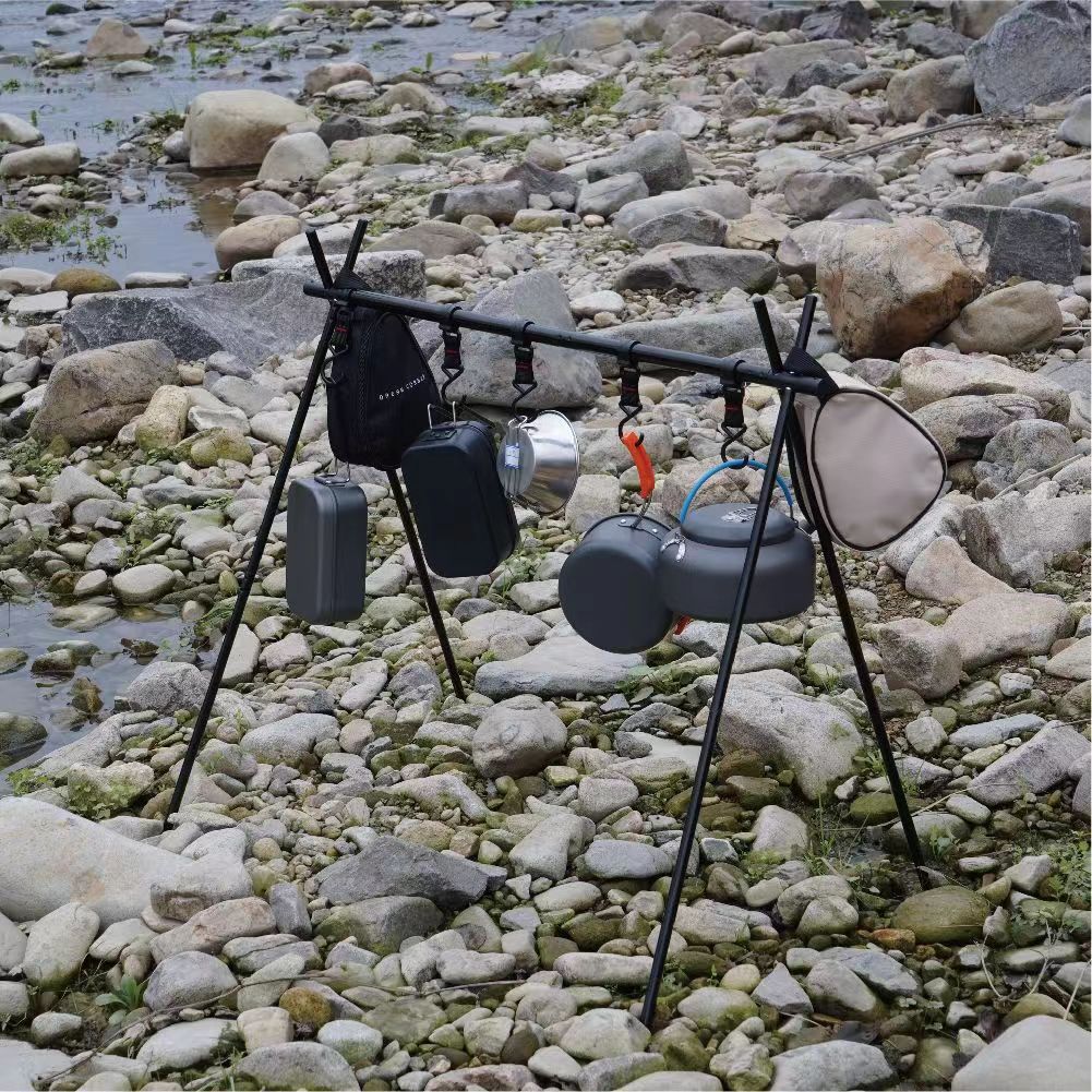 Outdoor Camping Folding Portable Camping Triangle Storage Rack Wild Cooker Pot Rack Storage Rack Lamp Rack Hanger Bracket Lamp Pole