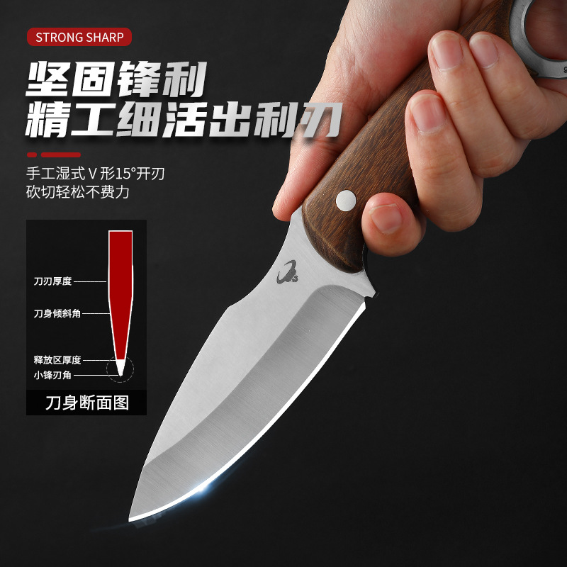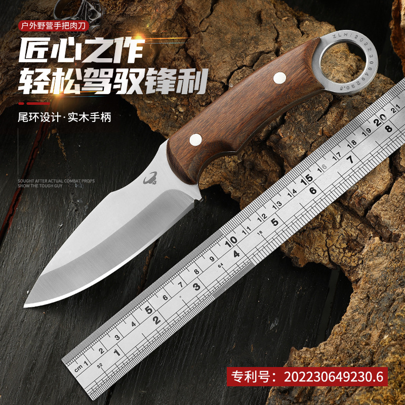 Outdoor knife handle meat knife with ring knife straight knife camping camping Mongolian barbecue knife