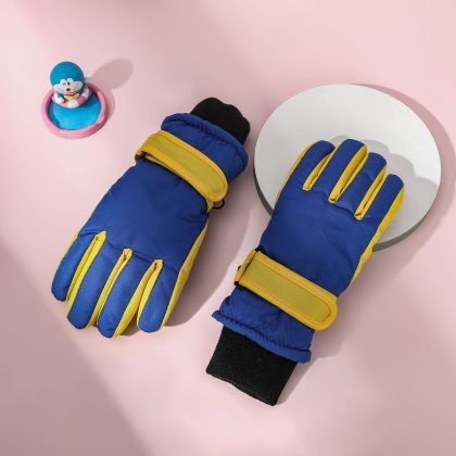 Outdoor sports children's ski gloves 3-9 years old winter simple plus velvet men's and women's windproof warm riding gloves wholesale
