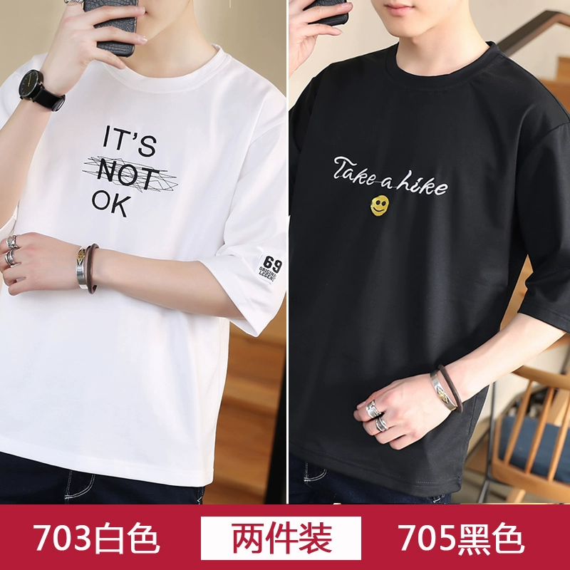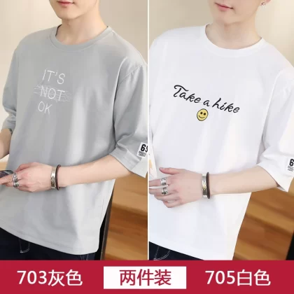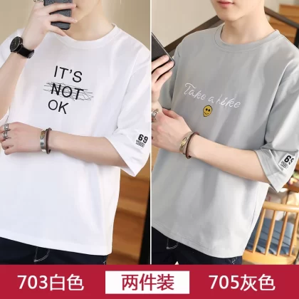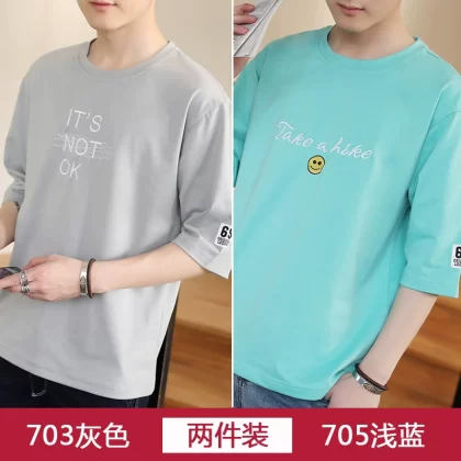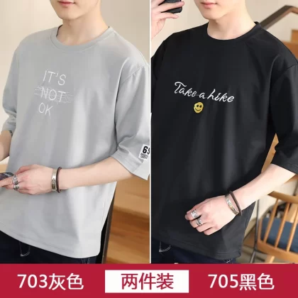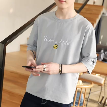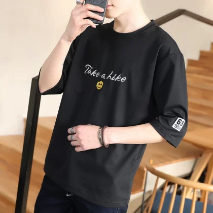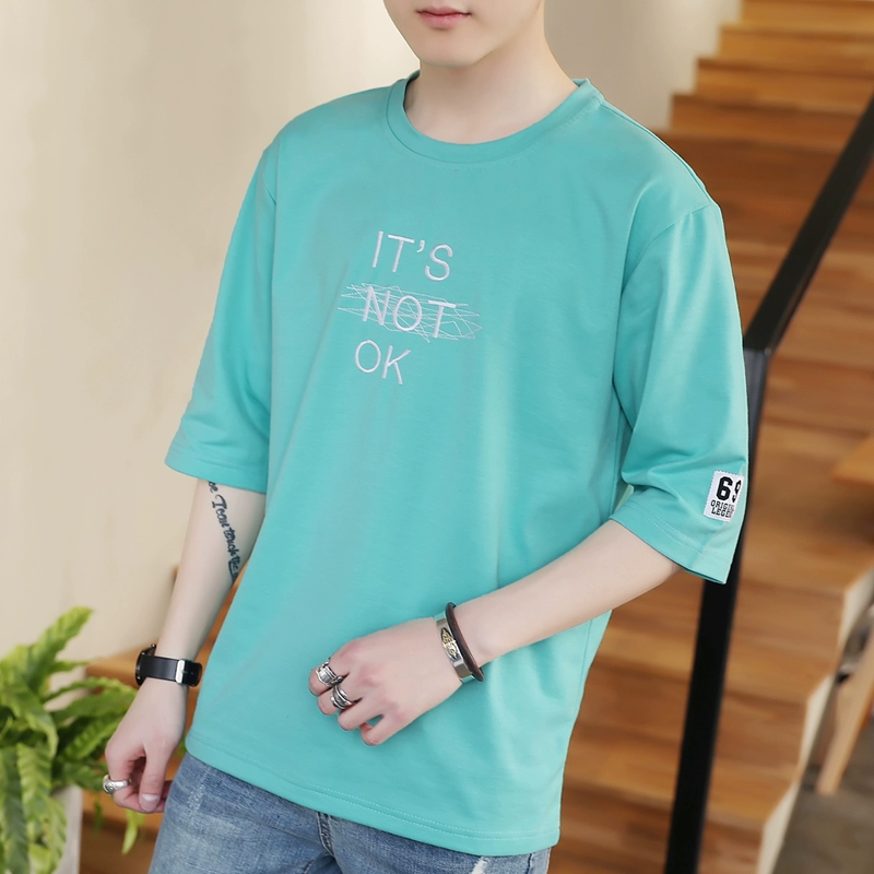 | nameOriginal | Outlet men's embroidered three-quarter short-sleeved T-shirt |