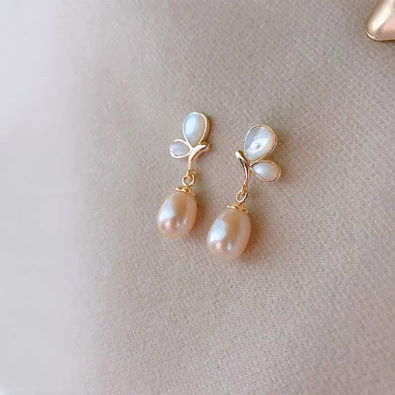 Outlets Natural Pearl S925 Sterling Silver Autumn Sweet Pearl Butterfly Earrings Women's Earrings Trendy